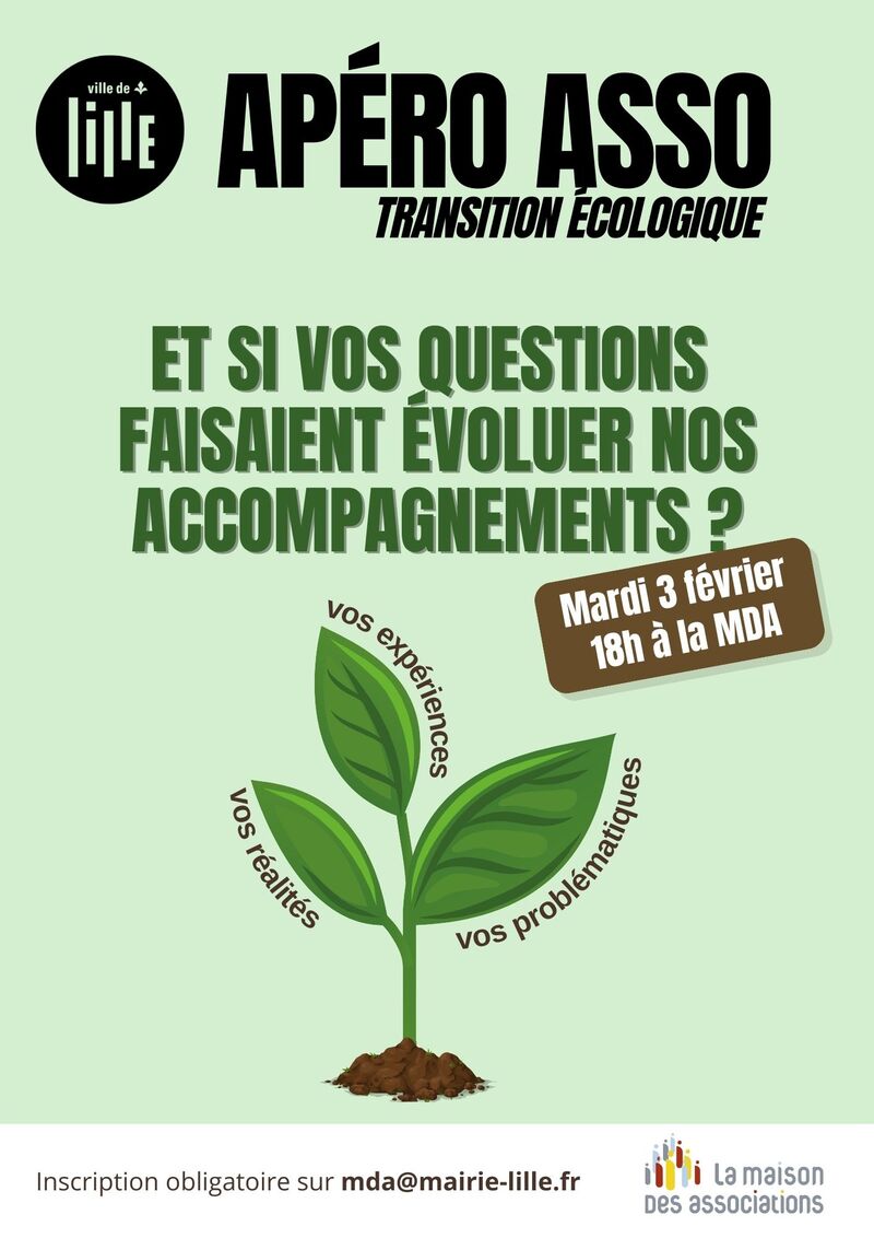 La Maison des Associations de Lille organise un nouvel Apéro Asso dédié à la transition écologique, le mardi 3 février à 18h, au sein de la MDA.