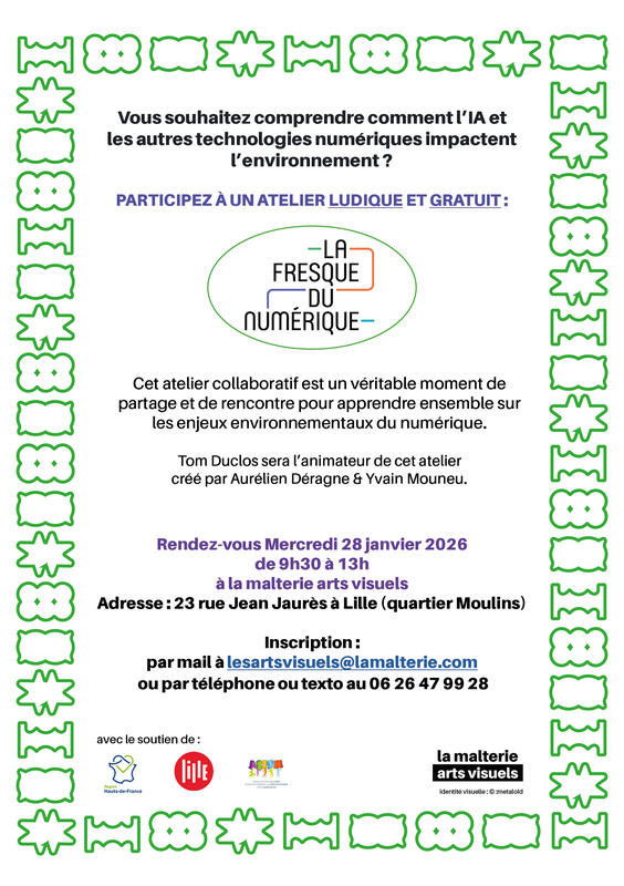 Atelier de Fresque du numérique avec Tom Duclos, mercredi 28 janvier, de 9h30 à 13h, à la malterie arts visuels.